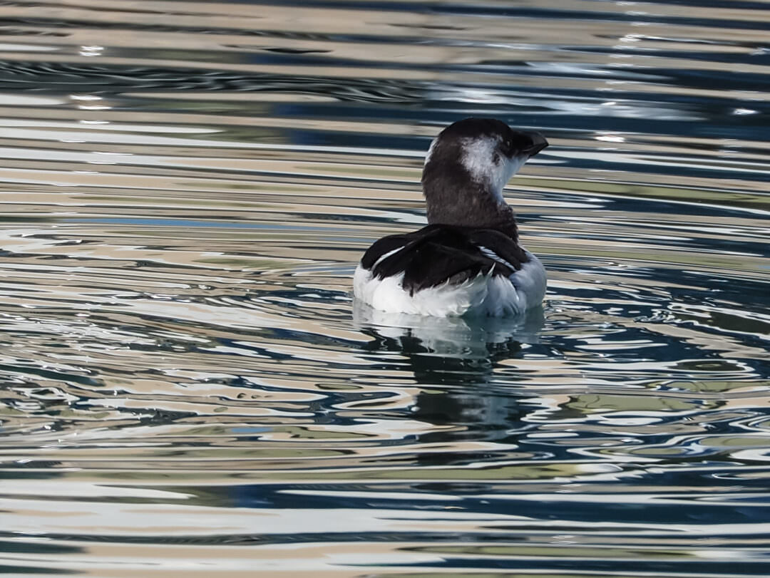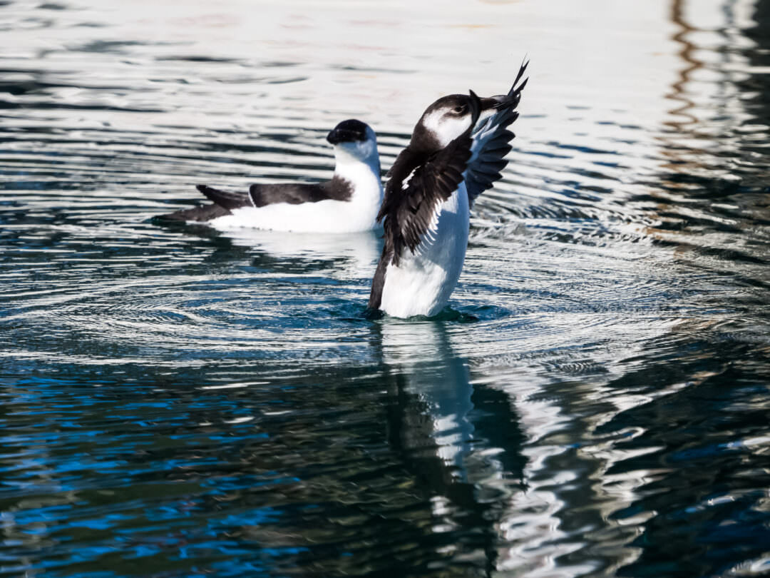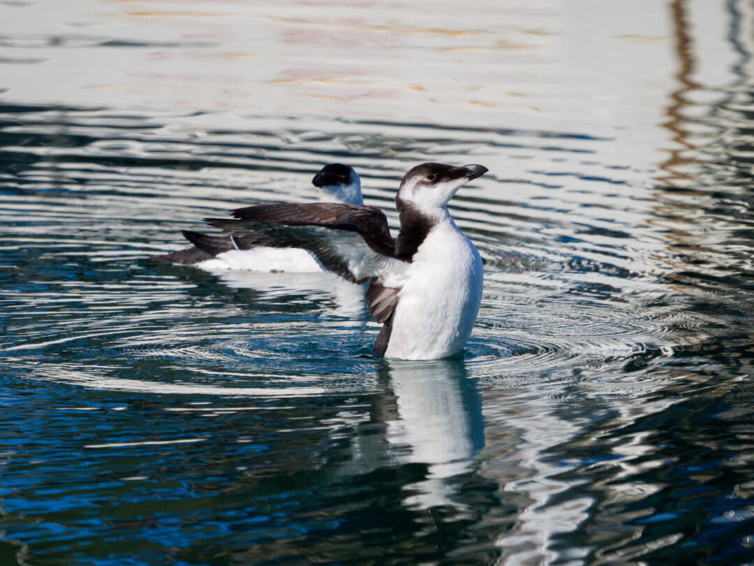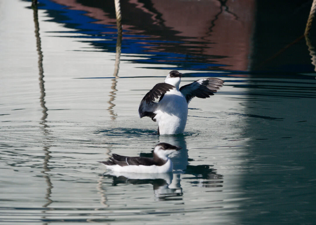 Pertany a la família dels àlcids, parent dels pingüins, però a diferència d’aquests vola bastant ràpidament, és un gran bussejador i sota l’aigua neda impulsant-se amb les ales.