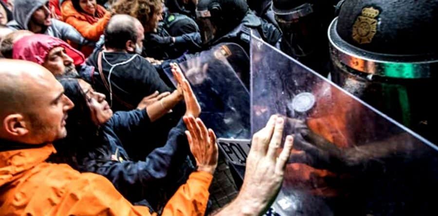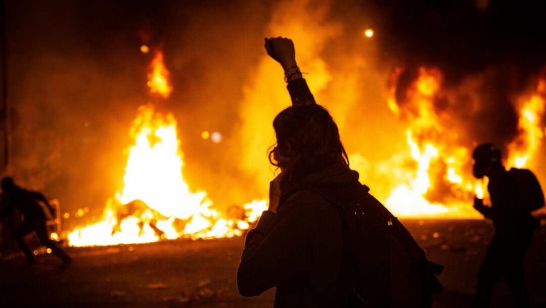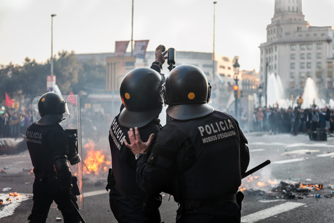 Imatges de l’article “Nits que duraran anys”, de Pasqual Espí, sobre les manifestacions del 18 d’octubre de 2019 contra la sentència del Procés.