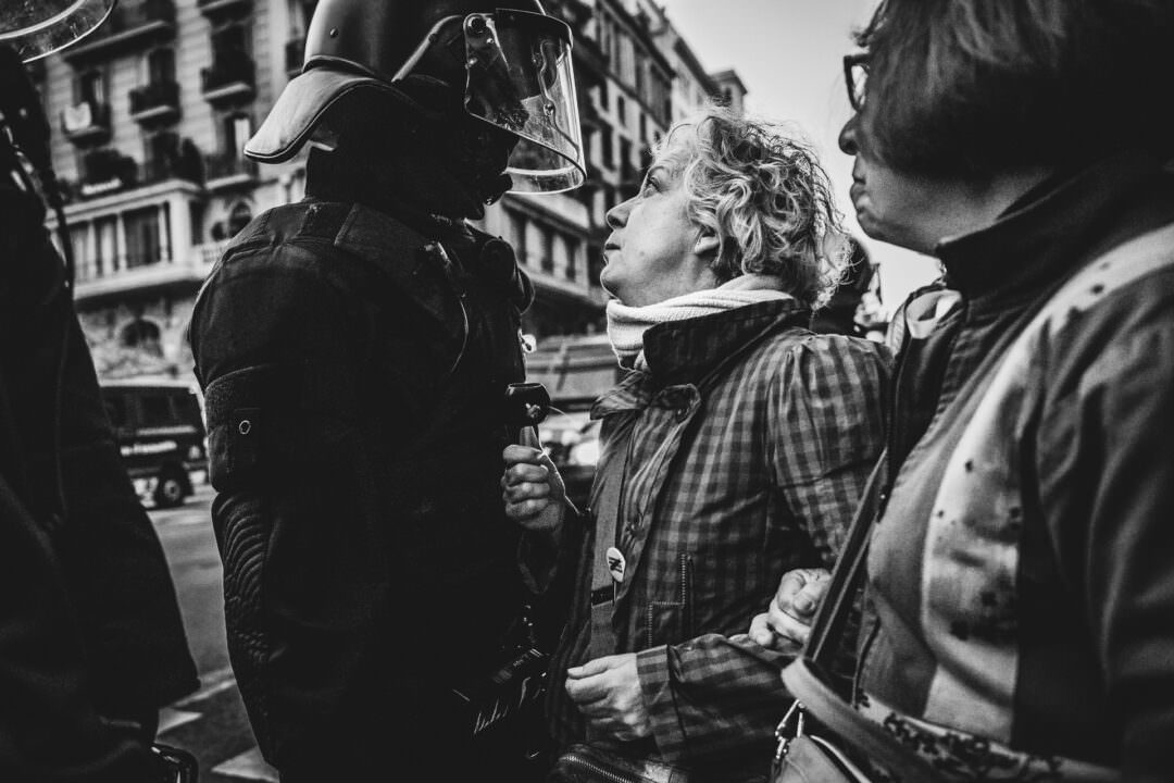 Procura, si no saps de què va l’assumpte, fixar-te en què fan els companys, com treballen, cap a on van, quan hi van, quan es retiren. Procura entendre-ho, perquè probablement les coses les fan per algun motiu, i estigues sempre a dins d’allà on passen les coses. És a dir, jo en una manifestació difícilment tiro de teleobjectiu, potser el porto més per a detalls o per fer un retrat en primer pla que no pas per cobrir el que passa en la manifestació. Fins i tot, amb un 16/35 mm la podràs fer bé, perquè s’ha d’estar a dins de les manifestacions, no es pot fer una manifestació amb un tele. Per tant, jo en això soc molt de la lliga del 35 mm, insisteixo.