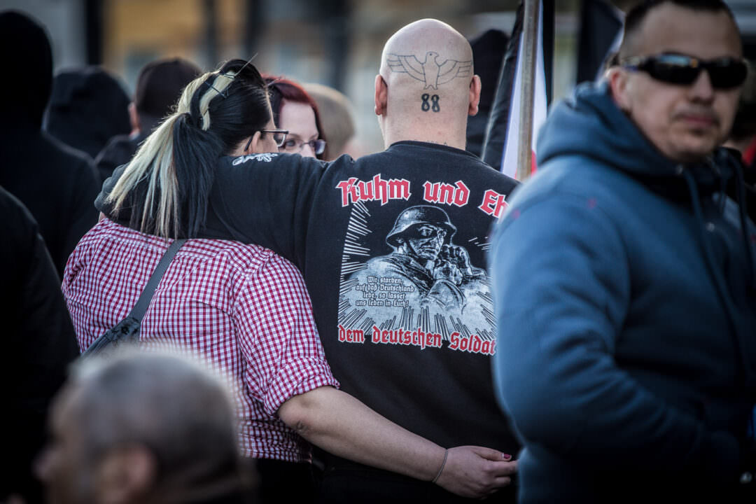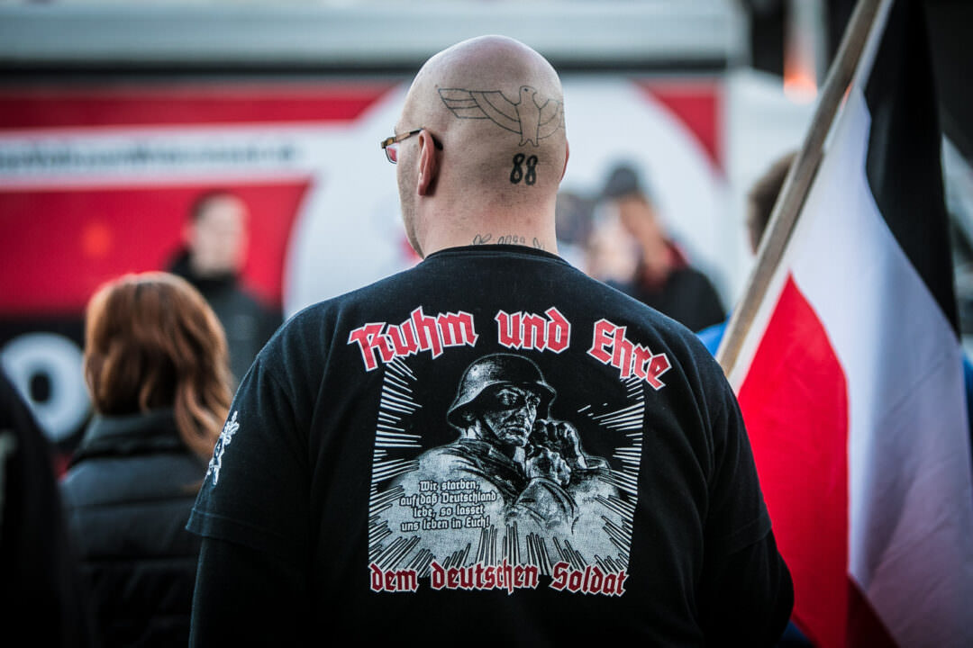 Fotogaleria “Nazis raus”. El 20 d’abril de 2016, 27è aniversari del naixement d’Adolf Hitler, uns 250 neonazis es van manifestar a la ciutat alemanya de Jena.
