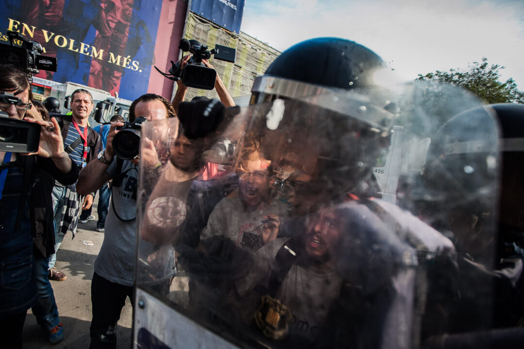 Hi ha moltes preguntes! Bé intento resumir. Jo crec que si ets aficionat a la fotografia i vols fer fotos, què t’impedeix anar-hi? Jo l’únic que et diria és que si estàs treballant al costat de fotoperiodistes que s’estan guanyant les garrofes els respectis, perquè és la seva feina. I dins del que fem nosaltres ja procurem fer la feina bé i a gust. Moltes vegades, quan hi ha aquests grans esdeveniments, et trobes aficionats a la foto que volen sortir, perquè tenen tot el dret a sortir a fer fotos, evidentment, i mai se m’acudiria dir res a ningú. Però el problema ve quan ells volen estar a primera fila. Entre els fotoperiodistes, qui està a primera fila és qui ha arribat primer. Moltes vegades et trobes gent que no sap de què va la història i se’t fot davant. Els has de dir: “No, no, perdona, jo aquí fa una hora que m’espero, tu passa darrere o ajup-te”. Nosaltres sempre treballem així, respectant molt el company, i malauradament qui no coneix l’ofici moltes vegades no ho respecta. I això sí que ens distorsiona molt, perquè nosaltres no estem allà per passar l’estona, nosaltres estem allà per pagar el lloguer i el menjar dels nostres fills. Per tant, ens hi va molt en el fet de fer una foto o no fer-la.