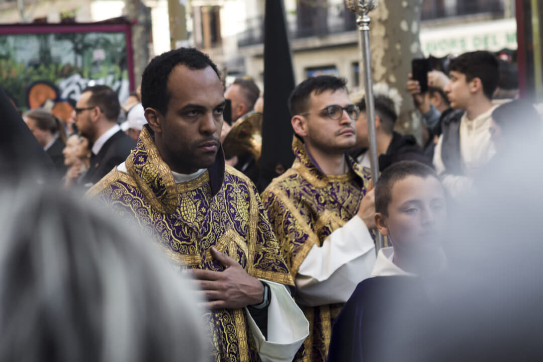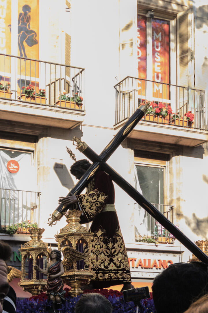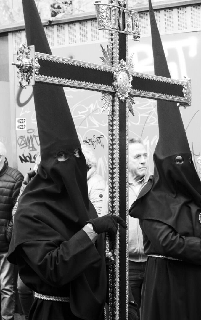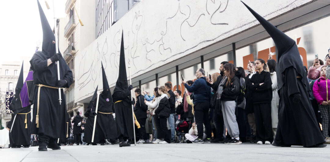 El que em va colpir de debò va ser veure uns nazarenos sense “cucurutxo” (amb el capirote caigut) i fent autèntica penitència: carregant amb una creu a l’espatlla, descalces –aparentment semblaven dones, encara que per raons seculars era difícil d’assegurar–, i algunes arrossegant cadenes ostentoses. Van fer tot el circuit de la processó (que no era curt) sense ningú que les substituís. De festa, no hi anaven, us ho puc assegurar. Si és una penitència, les acompanyo en el sentiment… Ningú no es mereix quelcom així.