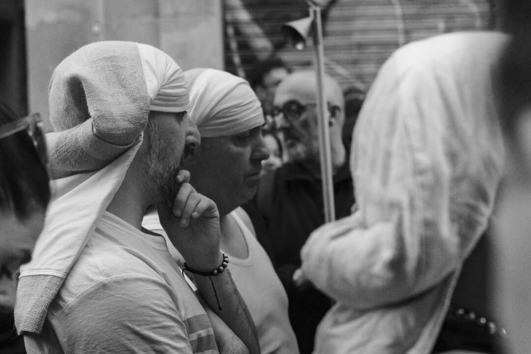 Com a bona processó, trobem un seguici de nazarenos (personalment sempre els he anomenat “cucurutxos”) dels quals se’m fa difícil entendre el seu paper: van d’incògnit, però no sembla que s’autoflagel·lin gaire, més aviat són un seguici macabre de la processó.