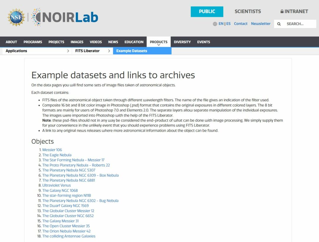 Pàgina d’exemples d’imatges FITS i tractament amb Photoshop. Noirlab.edu